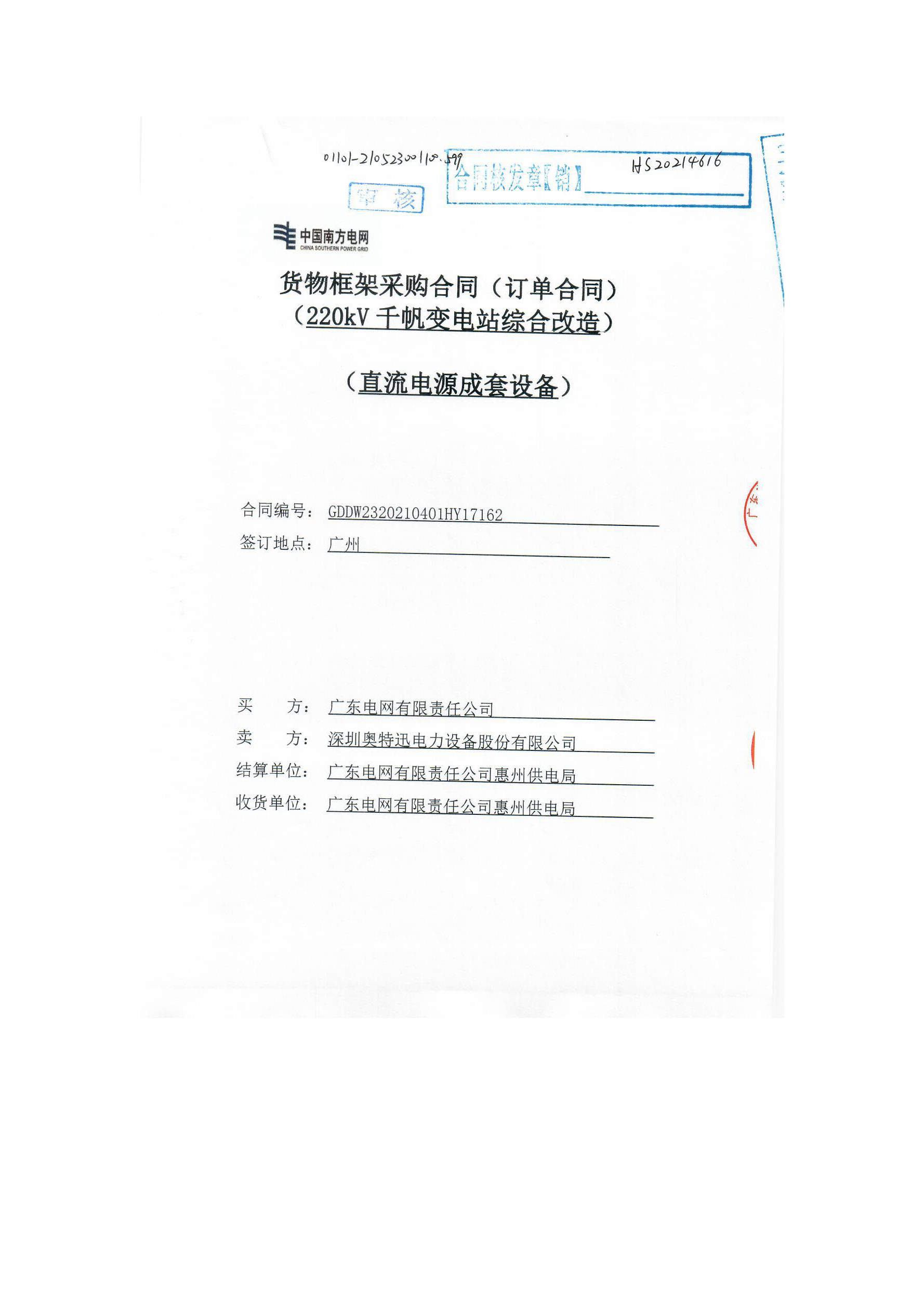 案例內容:廣東惠州220kV千帆變電站綜合改造直流電源