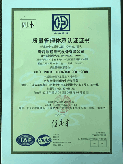 珠海順鑫電氣設備有限公司是從事高、低壓成套電氣設備、母線槽、智能電氣及輸配電設備的研發、生產、銷售安裝于一體的現代化高科技企業。公司主要產品包括:密集型母線槽、照明母線、耐火母線槽、高壓封閉式母線槽。公司產品品質通過國家強制性“3C”認證,全面實行嚴格的IS90001質量管理。滿足并適應不同工程項目的要求。 公司擁有完善的售前、售中、售后全方位的服務體系,公司遍布國內的服務網絡為您的項目提供及時周到的服務,而且我們還為您提供產品的技術培訓及指導安裝、通電調試、產品維護、回應投訴等服務、我們高素質的工程技術人員為您的項目提供一攬子專業解決方案和優質、高效、快捷的服務。 公司以市場為導向,始終把“質量、價格、服務”三方面作為運營的重點,全面貫徹“全員參與、科學管理、持續發展,創順鑫品牌”的質量方針。以客戶為中心,努力為客戶創造價值,建立長期合作伙伴關系,攜手共創點擊查看