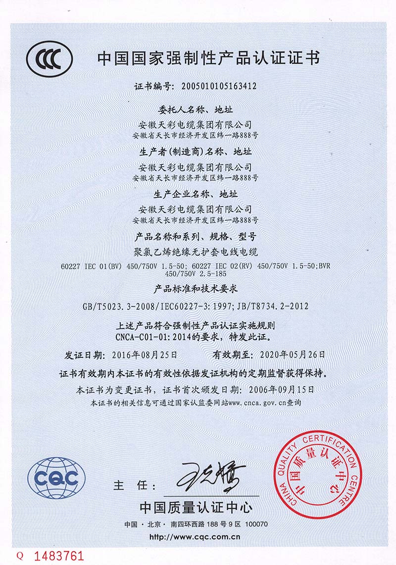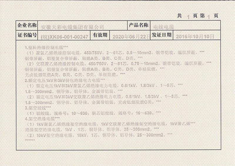 安徽天彩電纜集團有限公司位于安徽省儀表、電線、電纜生產基地——天長市,是一家集研發(fā)、生產和銷售為一體的儀表、電線、電纜和橋架生產企業(yè)。公司成立于1992年,注冊資金26888萬元,總資產超過5億元,建筑面積四萬平方。公司通過ISO9001:2008質量體系認證、ISO14001:2004環(huán)境體系認證、OHSAS 18001: 2007職業(yè)健康安全體系認證,全國工業(yè)產品許可證認證、CCC認證、CE認證、煤安認證等多個國家級權威機構認證。公司被認定為“省高新技術企業(yè)”、先后獲得“滁州市守合同重信用單位”、“滁州市知名商標”, “AAA級信用企業(yè)” 、“安徽省A級納稅信用單位”等榮譽稱號,擁有13個實用新型專利。 公司生產的電纜產品包括電力電纜、控制電纜、計算機電纜、儀表電纜、橡套電纜、特種電纜、汽車新能源充電樁電纜等七大類上萬型號、規(guī)格產品,生產設備先進,檢測設備齊全,特別是橡套電纜產品,擁有六條現(xiàn)代化連硫生產線,產品電壓等級覆蓋高、中、低壓,礦用點擊查看