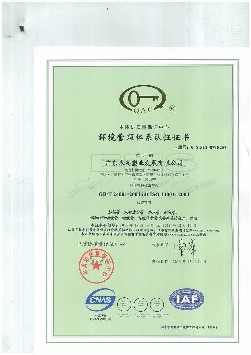 廣東永高塑業發展有限公司系國內A股上市的規模最大的塑料管道公司---永高股份有限公司(股票代碼:002641)的全資子公司。公司位于廣東省廣州市花都區,占地面積22萬平方米,是一家專業從事化學建材研發和生產制造的高新技術企業,系中國塑料加工工業協會會員單位,廣東省塑料加工工業協會常務理事單位,廣東省質量檢驗協會常務理事單位,廣東省標準化協會會員單位。 公司自創建以來,開拓創新,銳意進取,努力實施科技促發展和打造一流品牌的戰略;堅持“市場第一用戶至上、品牌為根、誠信為本”的經營方針。在短短幾年內快速發展,成為國內同行業知名品牌。目前公司產品銷售網絡覆蓋國內20多個省市和地區,特別在華南地區的廣東、海南、湖南、廣西、福建等地,具有很高的品牌知名度和市場占有率。已先后通過IS09001:2008質量管理體系認證、IS014001:2004環境管理體系認證、GBlT28001-2001職業健康安全管理體系認證、并獲得“廣東省守合同點擊查看