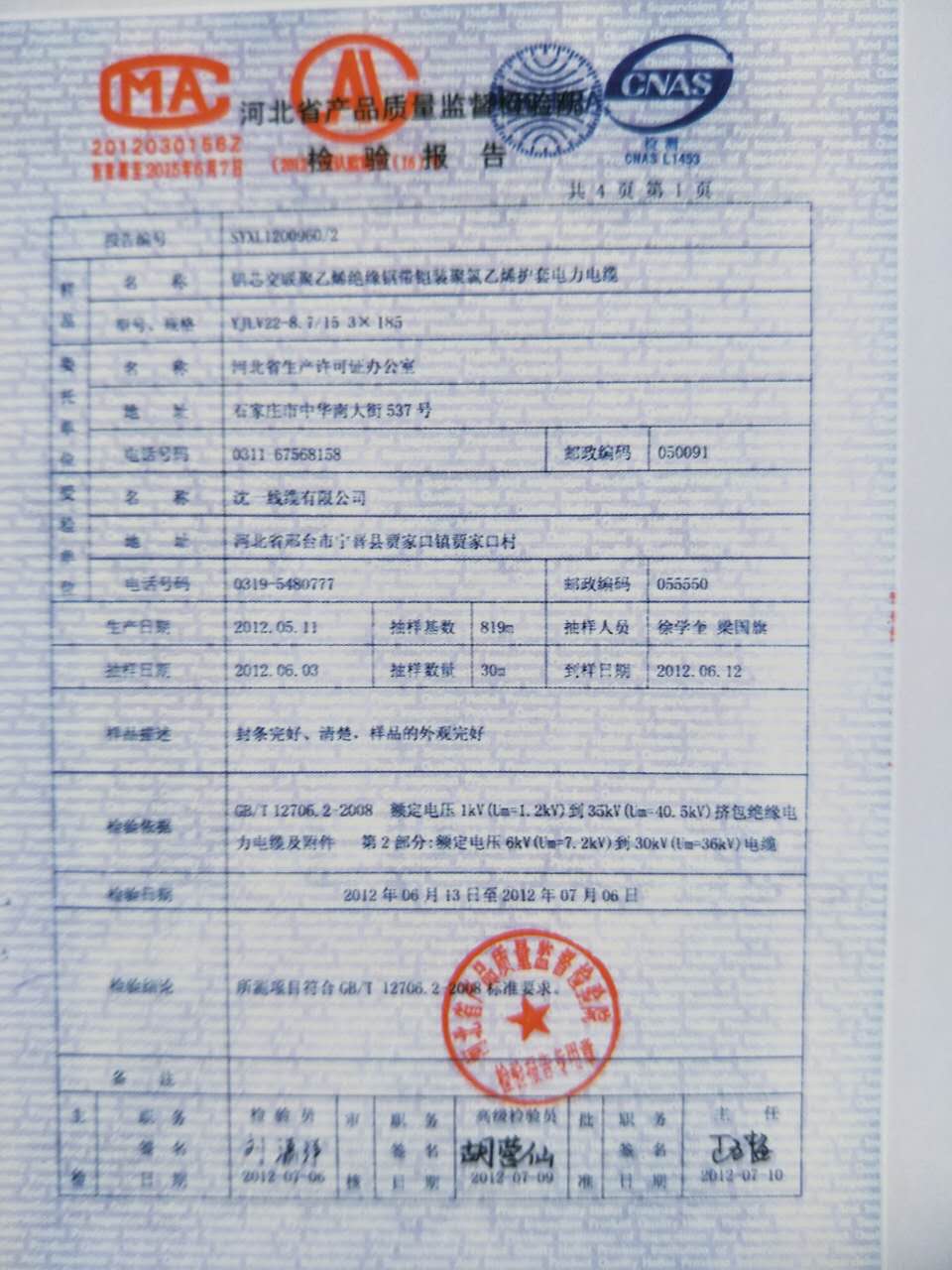 沈一線纜有限公司(原沈陽交聯電纜廠一分廠)成立于1993年10月,公司位于河北省寧晉縣西城工業聚集區,占地面積6.8萬余平米,固定資產3600萬元。先后獲得全國工業產品生產許可證、ISO9001:2008國家質量體系認證和CCC國家強制性產品認證,電纜被中輕質量保證中心認定為中國知名電線電纜質量公證十佳品牌的稱號,被河北省消費者協會評為誠信單位。連續13年被評為納稅先進企業。公司擁有各種電纜生產設備40多臺套,生產工藝先進,檢測手段完善,主導產品“鵬亮”牌35KV及以下電力電纜。公司憑借過硬的產品質量和良好的售后服務,在市場獲得較高聲譽,產品廣泛應用于我國能源、交通、水利、電力建設等領域。 企業秉承“聚賢才、鑄精品、創未來”的核心理念,堅持質量效益型、科技創新型、環保節約型的發展道路。沈一線纜有限公司愿與各界一道,創新發展,服務社會,共創未來。點擊查看