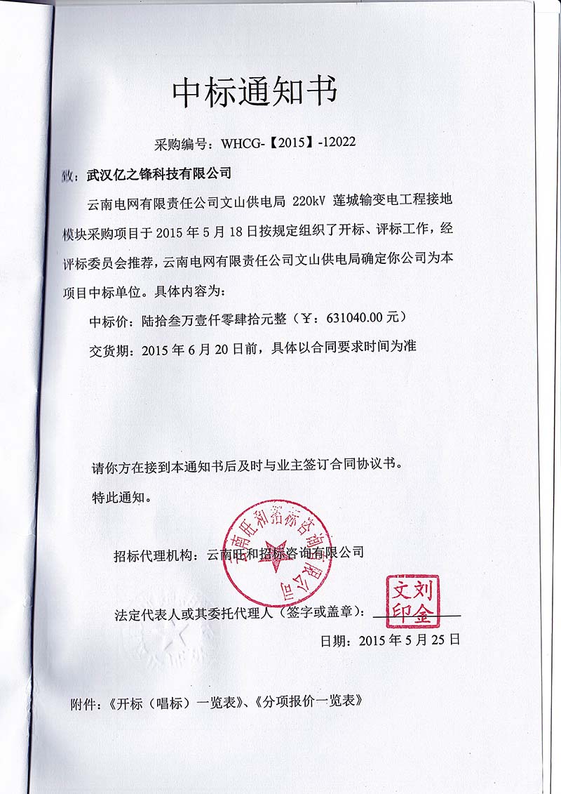 武漢億之烽科技有限公司是從事防雷與接地產品研發、生產、銷售、工程服務于一體的專業公司,公司成立于2008年,注冊資金1000萬元。公司取得“送變電工程專業承包 叁級”資質。公司通過自主創新,發展特色高新技術產業,擁有物理型接地模塊,物理型降阻劑,離子接地極,銅包鋼接地極,離子緩釋填料,放熱焊接,新型導電防腐涂料,儀器儀表等系列產品,自建生產基地,承接接地總包工程。 公司通過ISO 9001管理體系認證,通過“國網電力科學研究院”7項試驗檢測、“中國電力科學研究院”2項試驗檢測、“農業部農業環境檢驗測試中心”1項試驗檢測、“南方電網試驗檢測中心廣西電力科學研究院”1項試驗檢測。 公司業績遍及全國,產品及工程服務廣泛應用在國家電網、南方電網、移動、聯通、電信、鐵路、石化、軍工、氣象、機房等領域。點擊查看