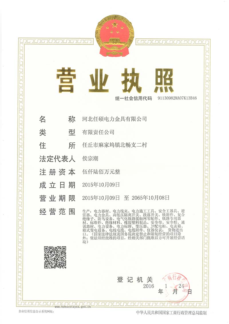 河北任碩電力金具有限公司主要經營:生產:電力器材、電力線夾、電力施工工具、安全工器具、避雷器、電力金具、高低壓隔離開關、跌落開關、鐵附件、復合絕緣子、防鳥設備、電氣化鐵路接觸網零配件、鐵路專用器材、標準件、絕緣材料、橡膠塑料制品、安全帶、安全帽、通訊器材、電力設備、電力標牌、變壓器、JP配電柜、電表箱、箱式變電設備、電線電纜、電纜附件、儀器儀表;貨物進出口。(國家法律法規及國務院決定禁止和限制經營的項目除外;yfpz)等產品。公司尊崇“踏實、拼搏、責任”的企業精神,并以誠信、共贏、開創經營理念,創造良好的企業環境,以全新的管理模式,完善的技術,周到的服務,卓越的品質為生存根本,我們始終堅持用戶至上 用心服務于客戶,堅持用自己的服務去打動客戶。點擊查看