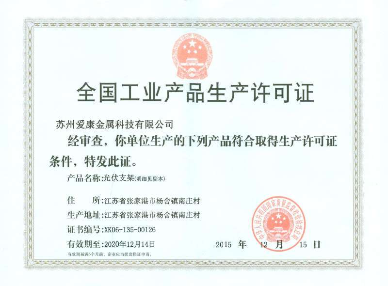 自成立以來(lái),憑借優(yōu)質(zhì)的服務(wù),截止到2021年底,全球累計(jì)出貨量超40GW。出口國(guó)家超80多個(gè)。 公司專業(yè)研發(fā)、生產(chǎn)、銷售光伏支架系統(tǒng)及相關(guān)配件,產(chǎn)品包括固定支架系統(tǒng)、新材料支架系統(tǒng)、跟蹤支架系統(tǒng)及各種定制型支架,同時(shí)承攬大型光伏電站項(xiàng)目的安裝施工業(yè)務(wù)。 公司自成立以來(lái),不斷汲取歐美、日本等地先進(jìn)技術(shù),自主研發(fā)和生產(chǎn)具有愛(ài)康特色的支架產(chǎn)品,形成了多款適用于各種復(fù)雜安裝環(huán)境且擁有自主知識(shí)產(chǎn)權(quán)的安裝支架。 愛(ài)康支架年產(chǎn)能15GW,位居中國(guó)光伏安裝支架行業(yè)前列。主要生產(chǎn)基地位于江蘇省張家港市,廠房占地面積57000平米,光伏支架自動(dòng)化生產(chǎn)線30余條。愛(ài)康一貫注重產(chǎn)品質(zhì)量管理,從原材料進(jìn)場(chǎng)到加工制造以及產(chǎn)品出貨的每一環(huán)節(jié),都進(jìn)行嚴(yán)格的質(zhì)量檢驗(yàn),確保品質(zhì)穩(wěn)定,因此生產(chǎn)的光伏支架產(chǎn)品,品質(zhì)居同行前列,深受國(guó)內(nèi)外客戶的好評(píng)。點(diǎn)擊查看