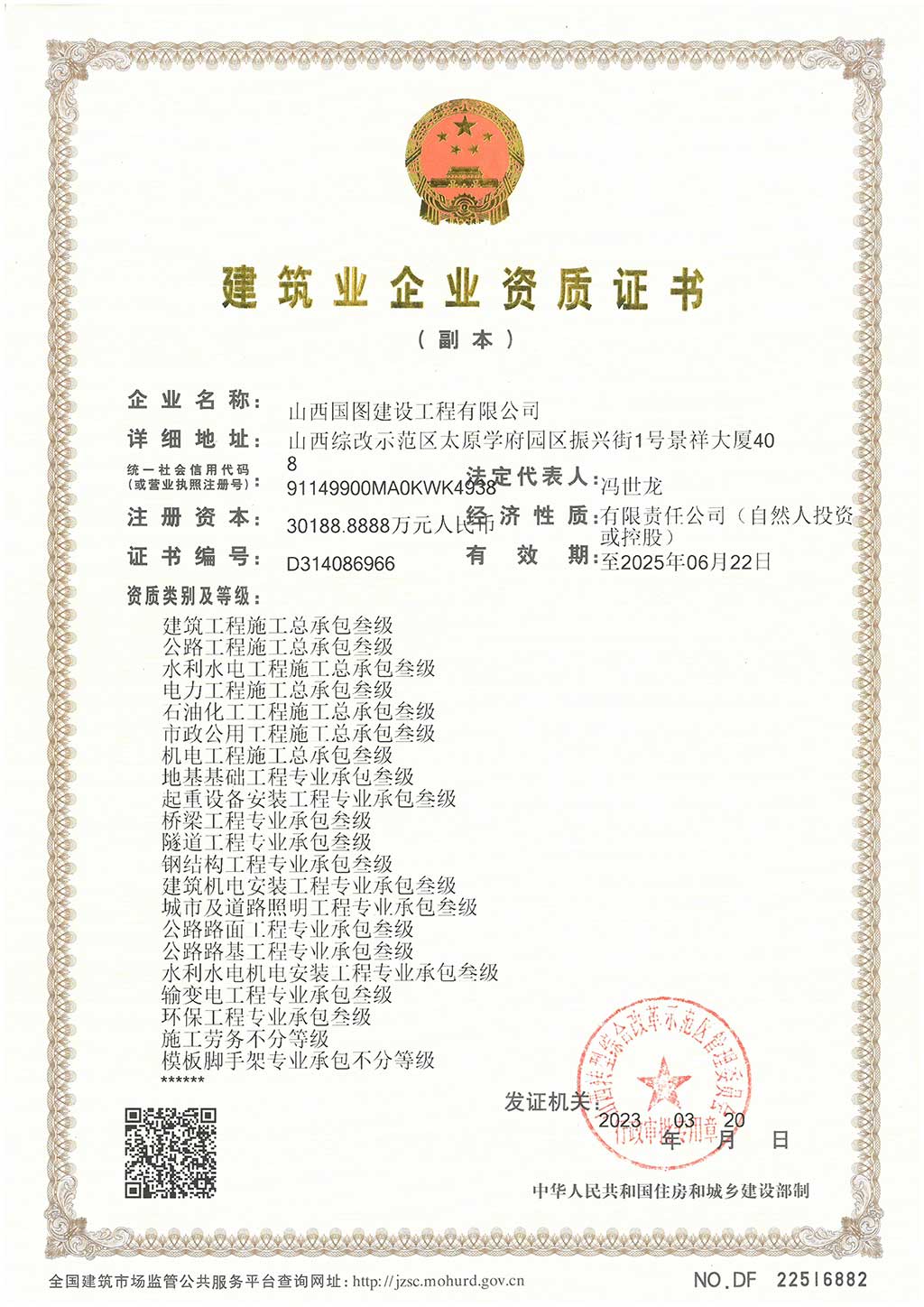 山西國圖建設工程有限公司成立于2019年12月30日,為國家房屋建筑施工總承包叁級資質,注冊資金30188.8888萬元,是房屋建筑、建筑裝修裝飾工程等為一體的綜合型公司,能承接各種大、中型工業與民用建筑的施工安裝任務。 近年來,公司自組建以來,秉承“爭創第一——團結、拼搏、開拓、爭先”的企業精神,以從事完全競爭性的建筑業為核心業務。 公司本著:“以質量求信譽,以信譽求發展,以發展求生存”的宗旨,建立健全了一套先進的質量管理體系,制定了合理的質量管理制度,形成縱橫交叉的質量監控網絡。為推動質量管理機制的科學規范運行,公司實行經理掛帥,質檢處與施工隊、質檢員組成質保體系逐級負責,層層把關,使每個工程、工點、工種、工序的質量自檢縱橫交叉,互測互檢,不留空檔,使生產施工的全過程始終處在嚴格的質量監督當中。 同時,在全國部分城市設立了分支機構。從而為企業的進一步發展,拓展了廣闊的空間,奠定了良點擊查看