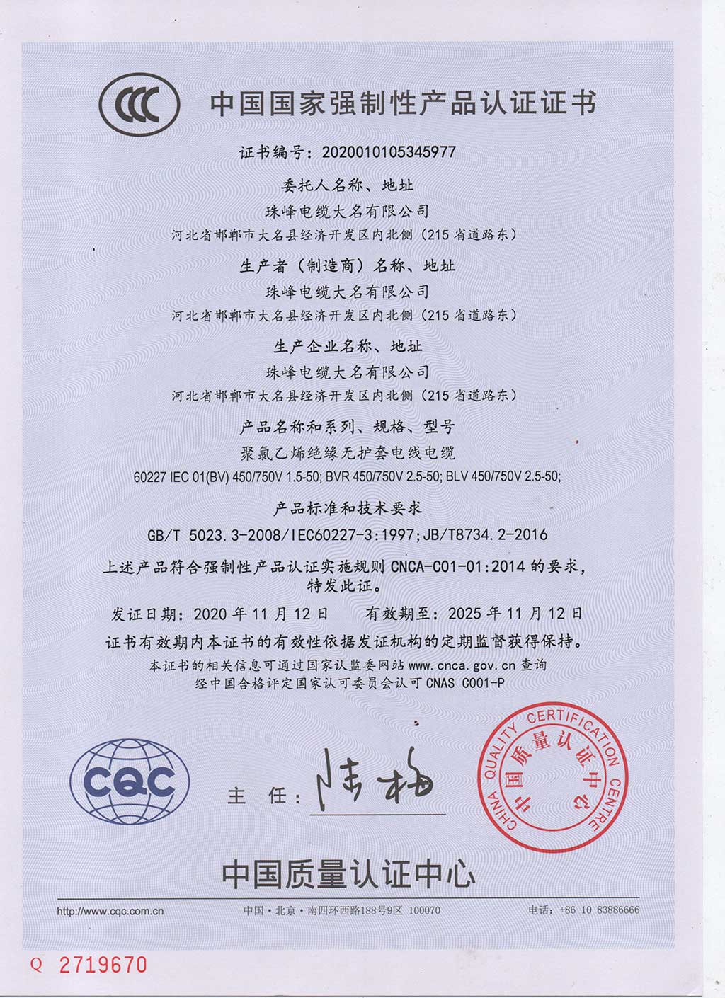 珠峰電纜大名有限公司是按照現代化企業制度建立的電線電纜專業制造企業,成立于2014年10月10日,位于河北省邯鄲市大名縣工業園區。公司現有員工400多人占地面積6萬平方米,建筑面積4萬平方米,固定資產10億6000萬元,現有生產設備幾十套,檢測設備儀器30多套,年生產能力達上億元人民幣。公司通過1S09001國際質量管理體系認證,并獲得工業生產許可證證書、國家強制性產品CCC認證證書,產品歷年來經國家檢測中心。省,市等質檢部門抽檢均合格。公司生產的產品主要有:護套線、塑銅線、消防線、防火電纜、電力電纜、控制電纜等各種型號的電線電纜。我們憑借豐富的制造經驗、雄厚的技術力量、完整的檢測設備,為眾多國家重點工程提供了優質的產品及服務,并在用戶中享有較高的知名度和美譽度。產品廣泛應用于電力、建筑、石化、軍工、機械制造、電子、科研、通訊等領域。暢銷全國30多個省市。點擊查看