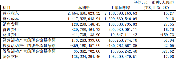 營業成本變動原因說明:主要系公司不斷加強生產過程中成本管控,勞動生產率提升及主要原輔材料成本下降;銷售費用變動原因說明:主要原因系銷售規模的增長,銷售部門職工薪酬、差旅費、運輸、包裝等一系列費用同比增長;