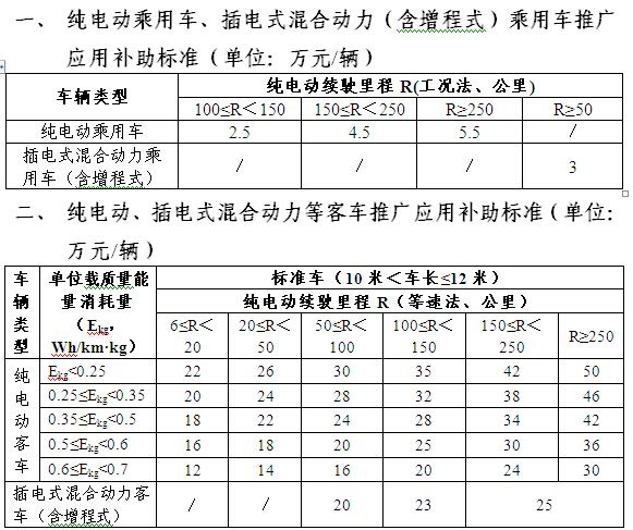 四部委在全國范圍內開展新能源汽車推廣應用工作,中央財政對購買新能源汽車給予補助,實行普惠制。具體的補助對象、產品和標準是: