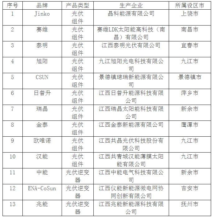 江西省光伏發(fā)電項(xiàng)目推薦設(shè)備目錄