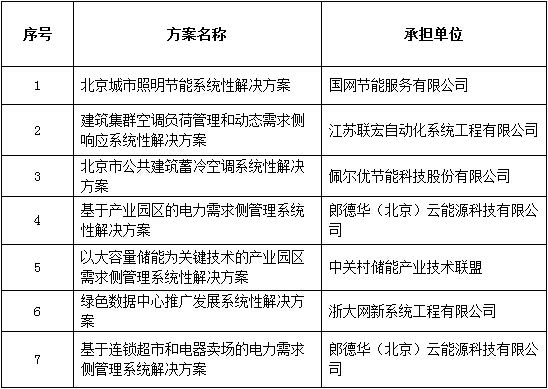 北京市電力需求側管理系統性解決方案承擔單位名單