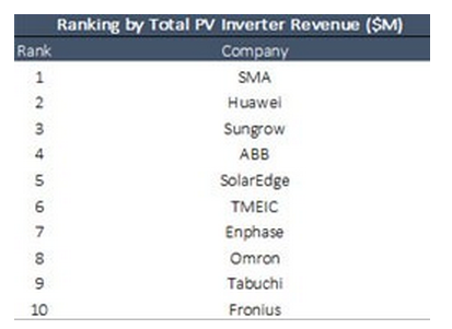 排名前十位的廠商包括住宅和商用逆變器廠商SolarEdge、Enphase、歐姆龍、田淵與福尼斯。