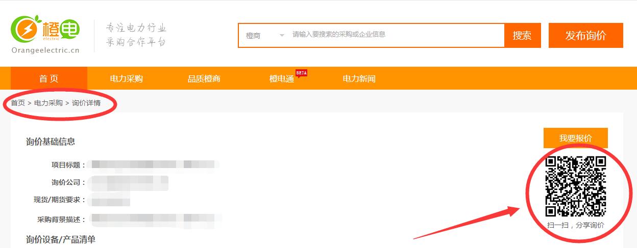 登陸橙電官網(http://www.orangeelectric.cn/),找到詢價項目,通過微信或QQ掃一掃詢價二維碼,分享到以下渠道,即能免費獲得對應獎勵。
