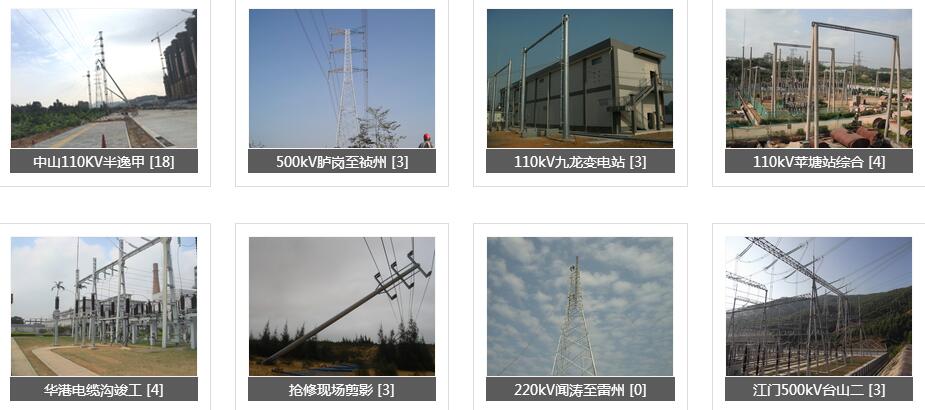 公司自成立以來,先后承接大小工程1000多項,其中500千伏送電線路勞務承包工程10回,架設線路長度約187.06公里;220千伏送電線路工程52回,架設線路長度約1049.7公里;110千伏及以下送電線路架設線路長度約5806.7公里;220千伏及以下變電工程主變總容量約86萬千伏安。