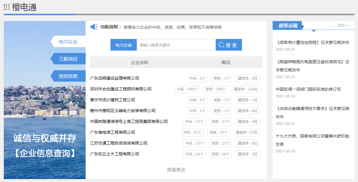 橙電平臺的“橙電通”是一個誠信與權威并存的電力行業信息查詢網站。用戶通過橙電平臺鏈接到“橙電通”查詢平臺從站內到站外的誠信查詢體驗,實現了電力行業信息查詢的新功能。
